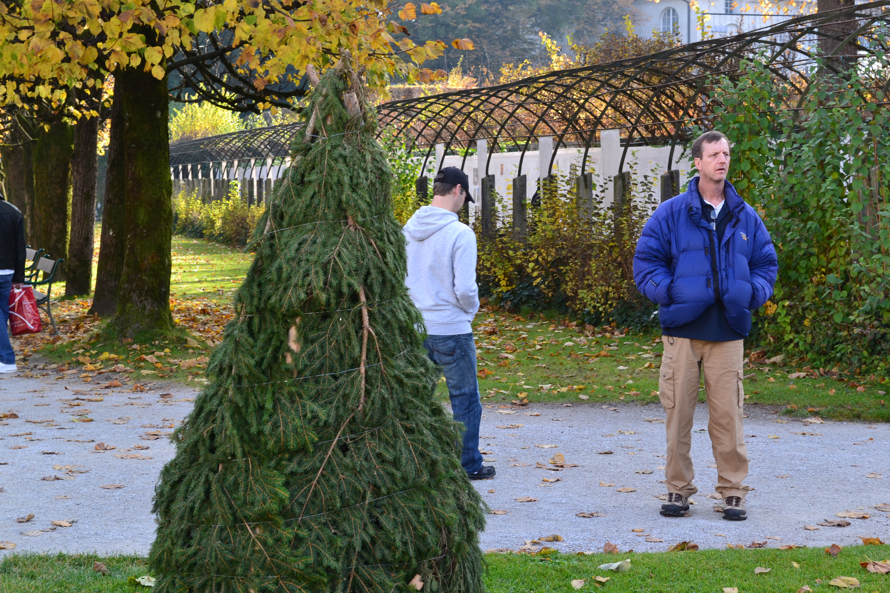 And at the edge of the city, Hellbrunn Palace (once home to the Hapsburg royalty) promises to burst into full Christmas bloom very soon. I’m told that the palace (at center of the photo) has 24 or 25 windows on the façade that faces this market-row, and the windows will all have shutters pulled and wreathed in the days ahead, so that it may become an advent calendar, with one window to be opened each day of advent.