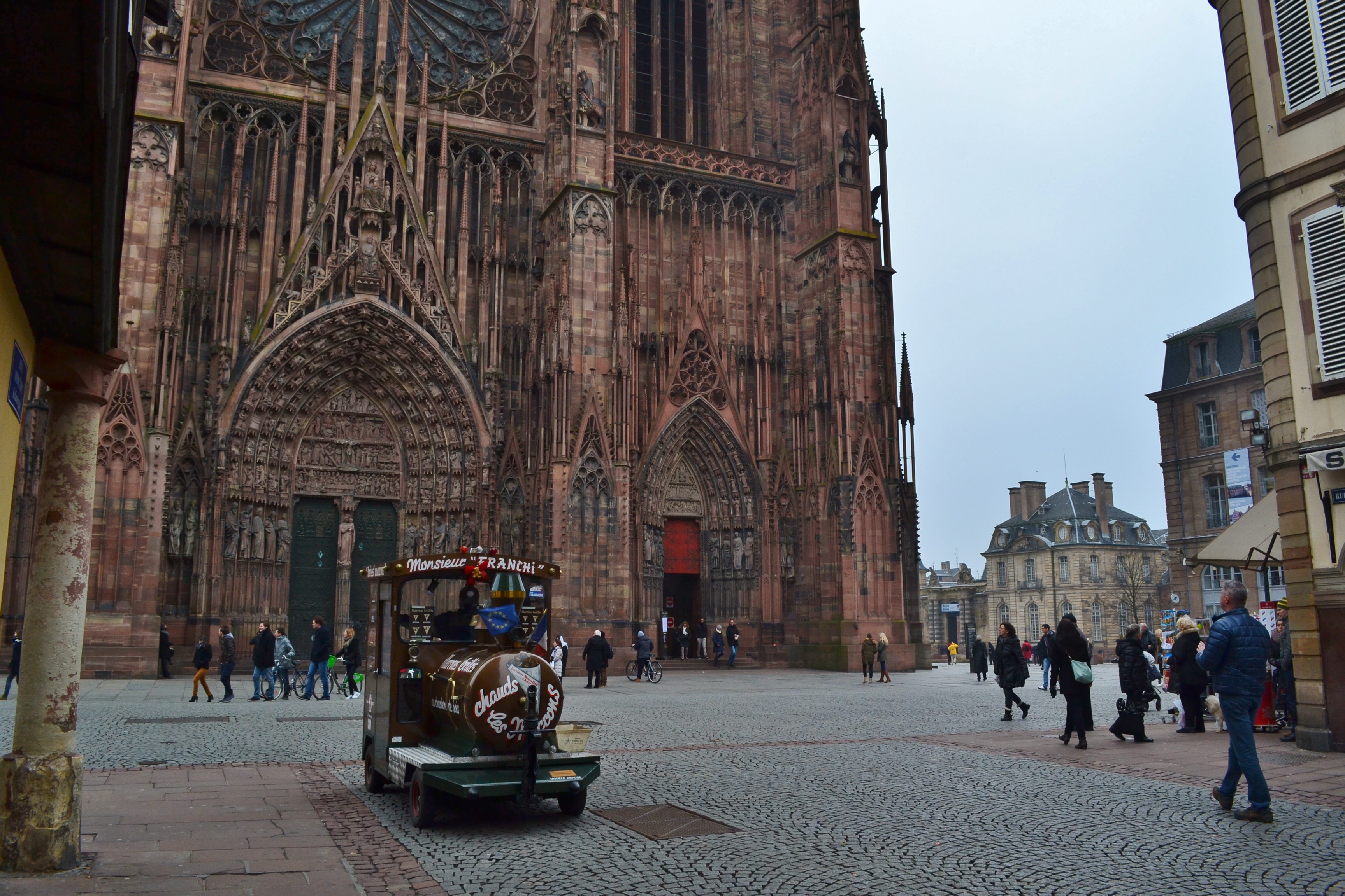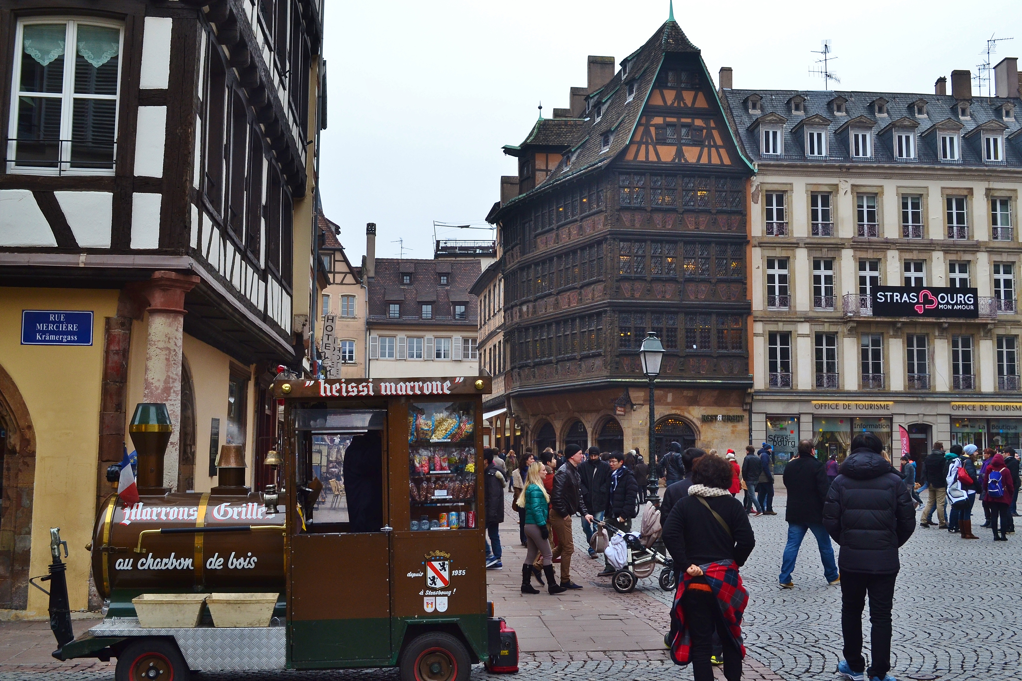 We spent a very cold weekend in Strasbourg, France, and found this chestnut roaster and his “heisse maroni” stand waiting for us outside the door of the Cathedral Notre-Dame de Strasbourg.