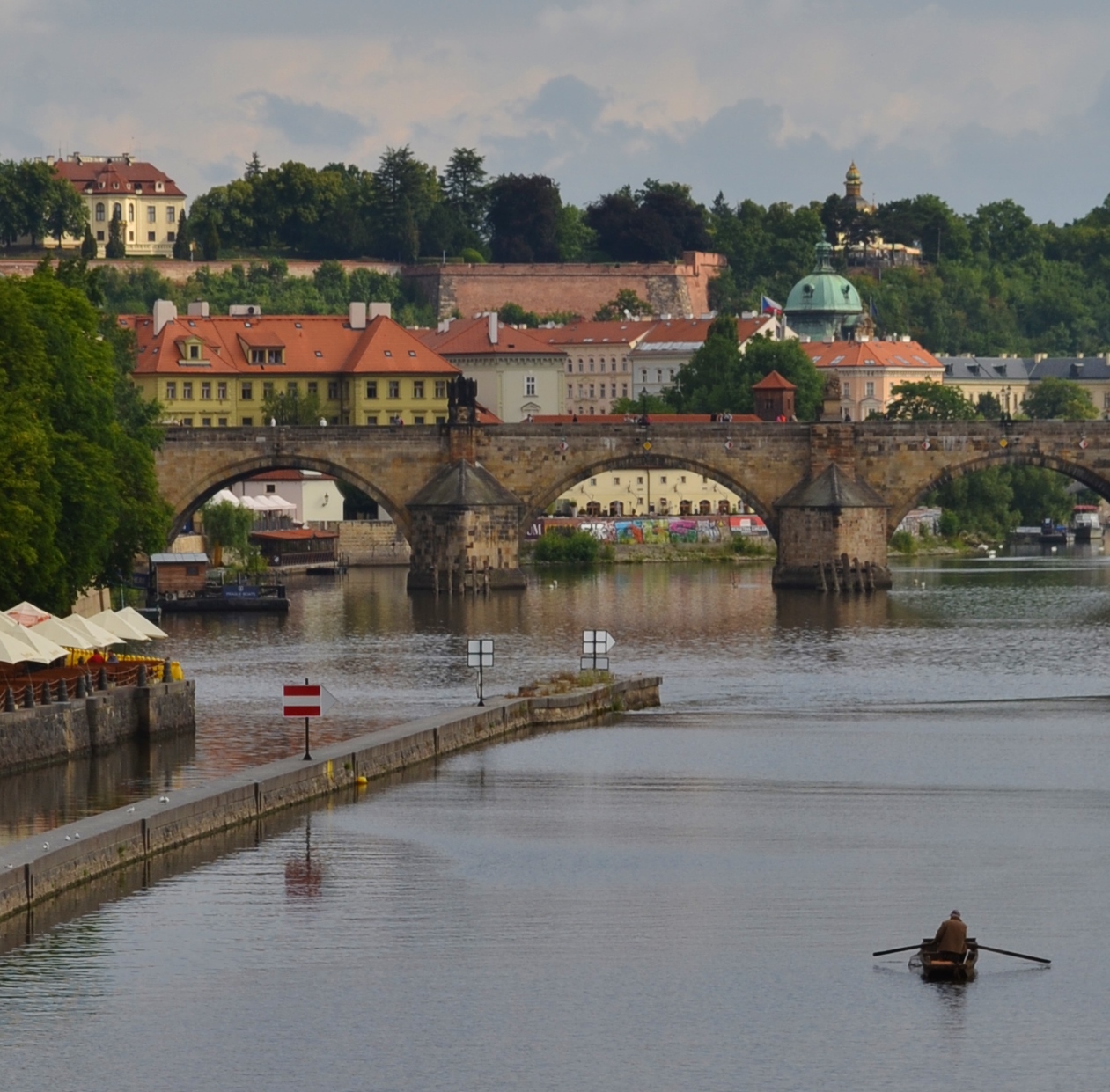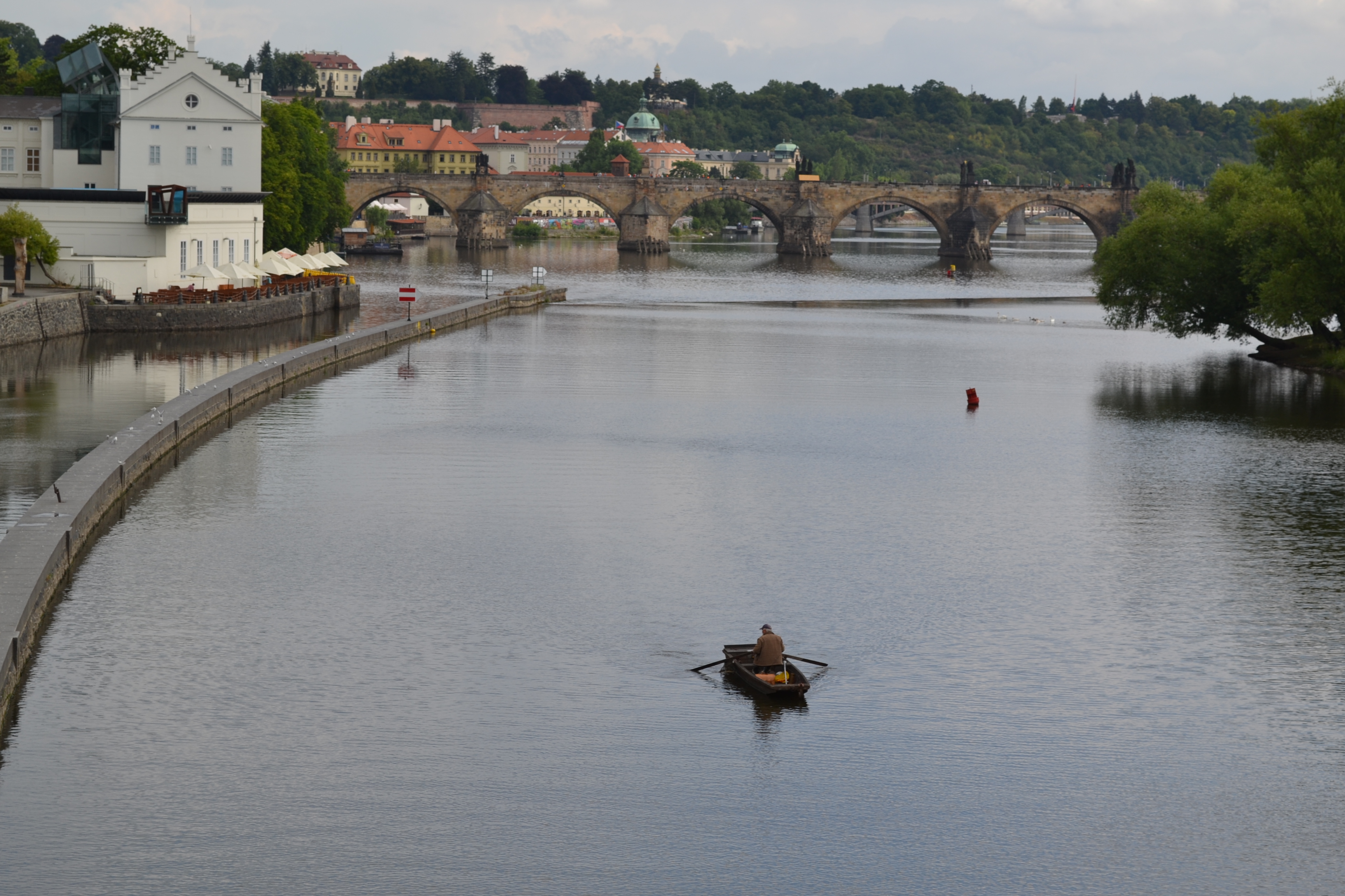 A beautiful view of the Charles Bridge, with our rower in the mid ground.