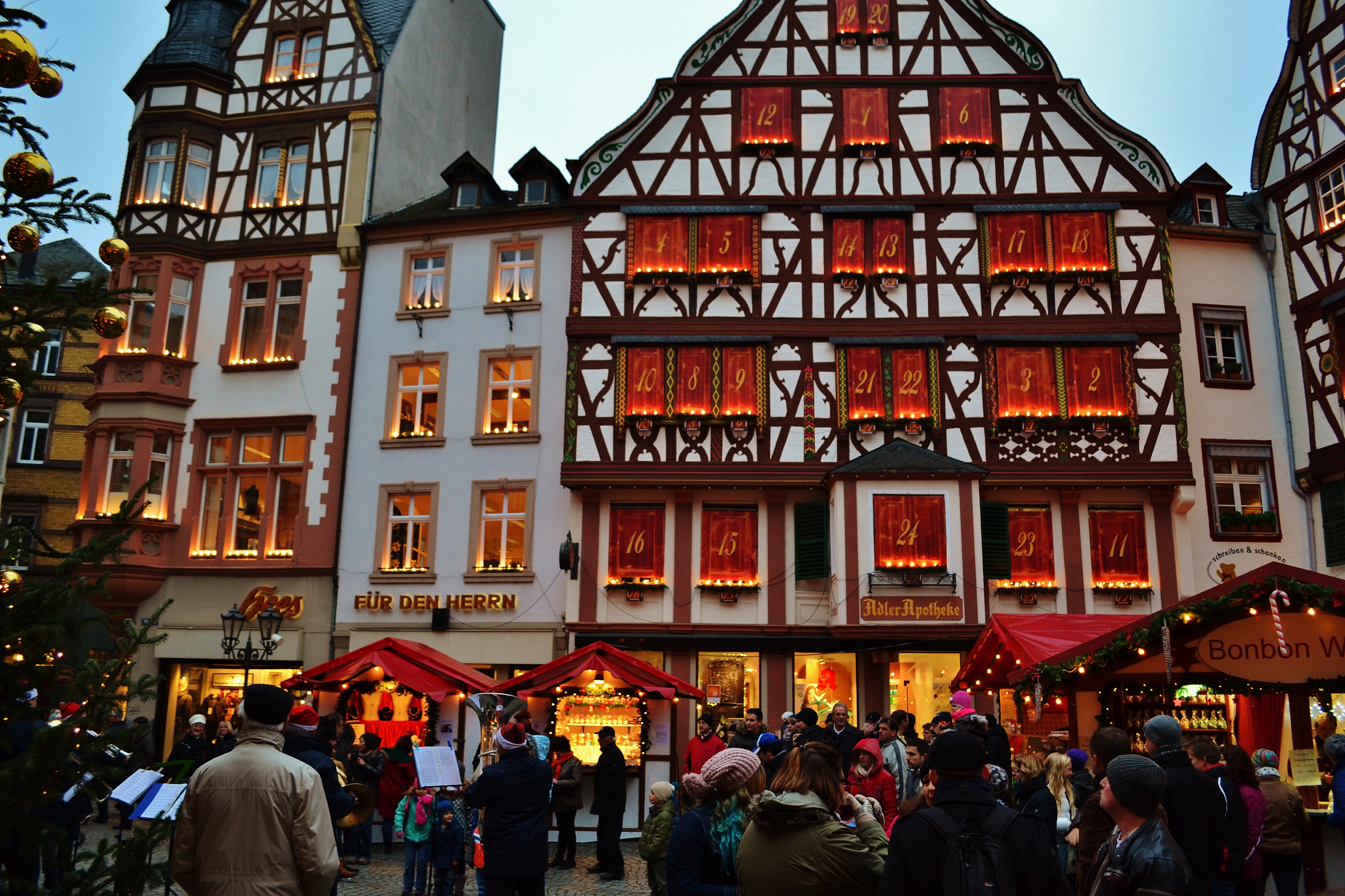 Late yesterday afternoon, we zipped over to Bernkastel-Kues, on the Mosel River, to catch the opening salvo of their Christmas Market.