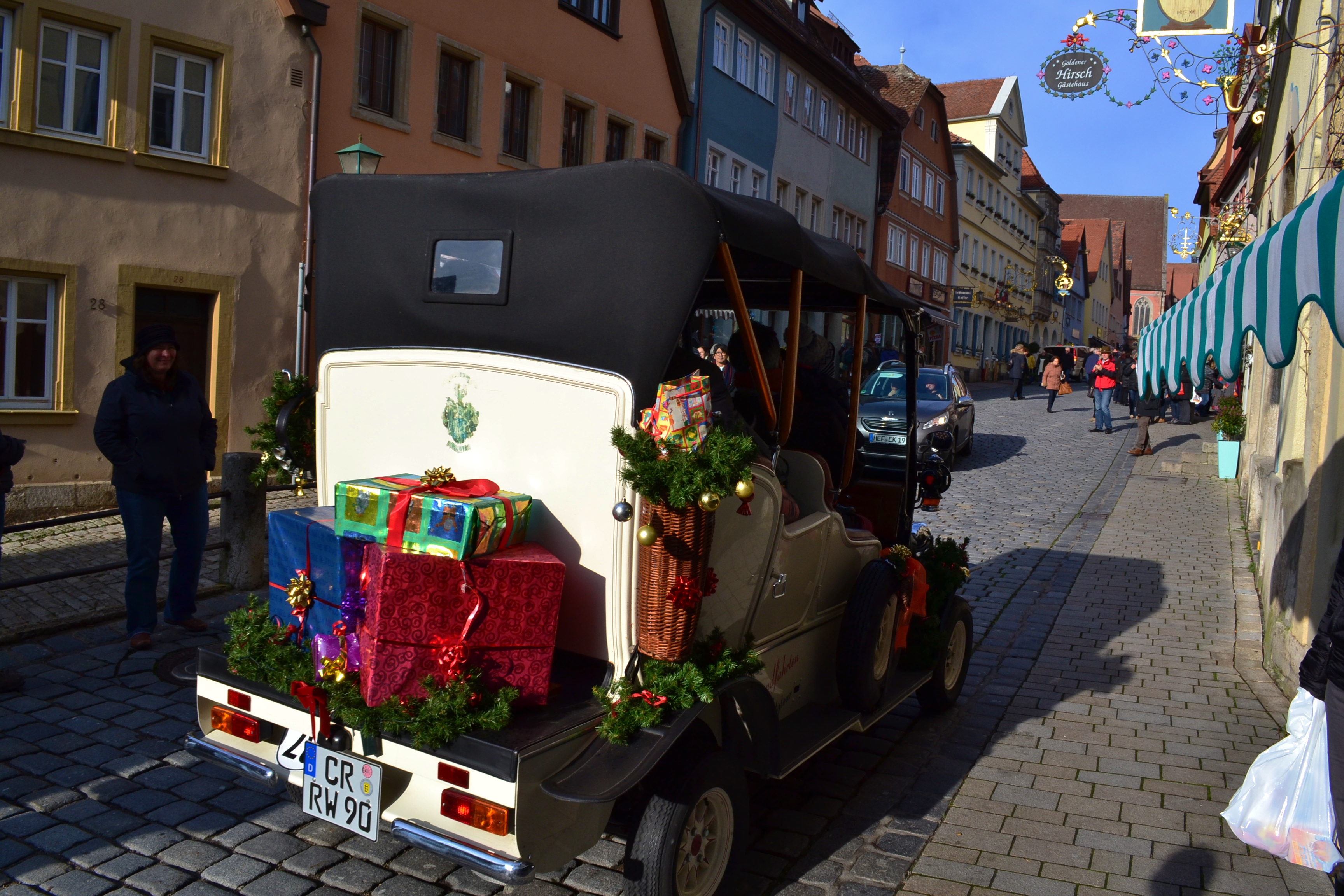 that the children around Rothenburg ob der Tauber have traditionally not celebrated on December 6th, but rather on November 11th. When she was young, that was when Belsnickel (or Pelsnickel) would visit. Belsnickel was a fur-cloaked character, rather scruffy, who seemed to combine both the surly (Krampus, Ruprecht, etc) and the kind (Nikolaus) into one being. He carried a sack with both treats and switches. Belsnickel might judge the children and either punish or reward them; he might toss candy around the floor for them, and then paddle their backs with twigs as they scrambled for the candy; or he might be more elfin and be more mischief prone than malice prone. He might be a lot of things, said my new friend; however, when November 11th came around the children were really quite scared of what would come for them.