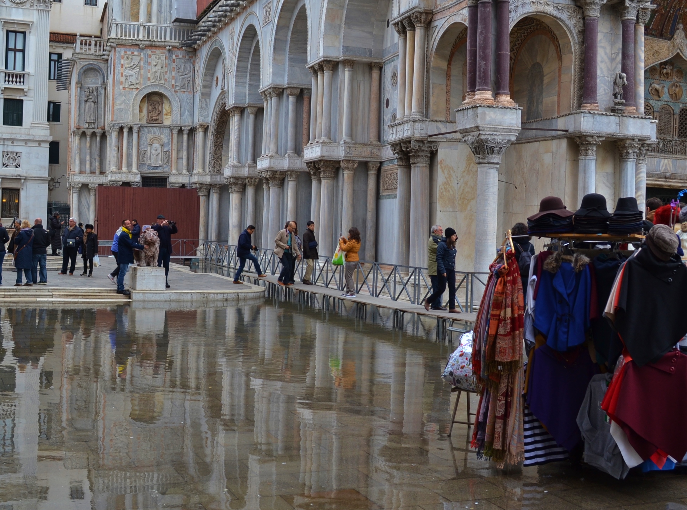 Obviously Venice has flourished and the marauders were kept at bay, but the sea must be built over the top of and constantly drained out. And when the Acqua Alta comes, raised walkways are put in place and life goes on.