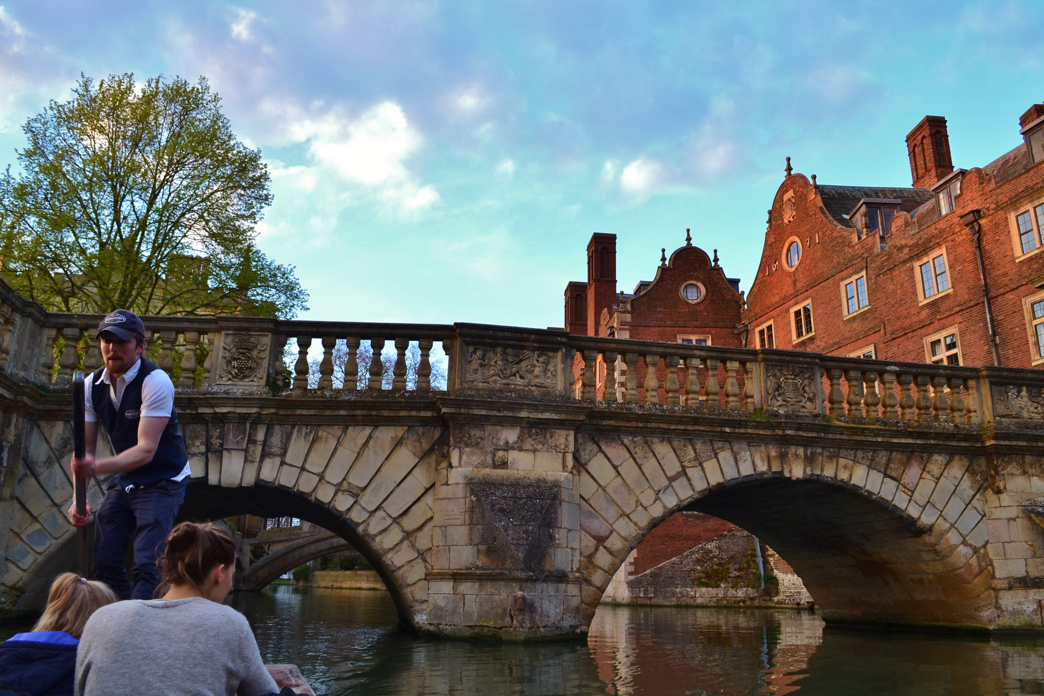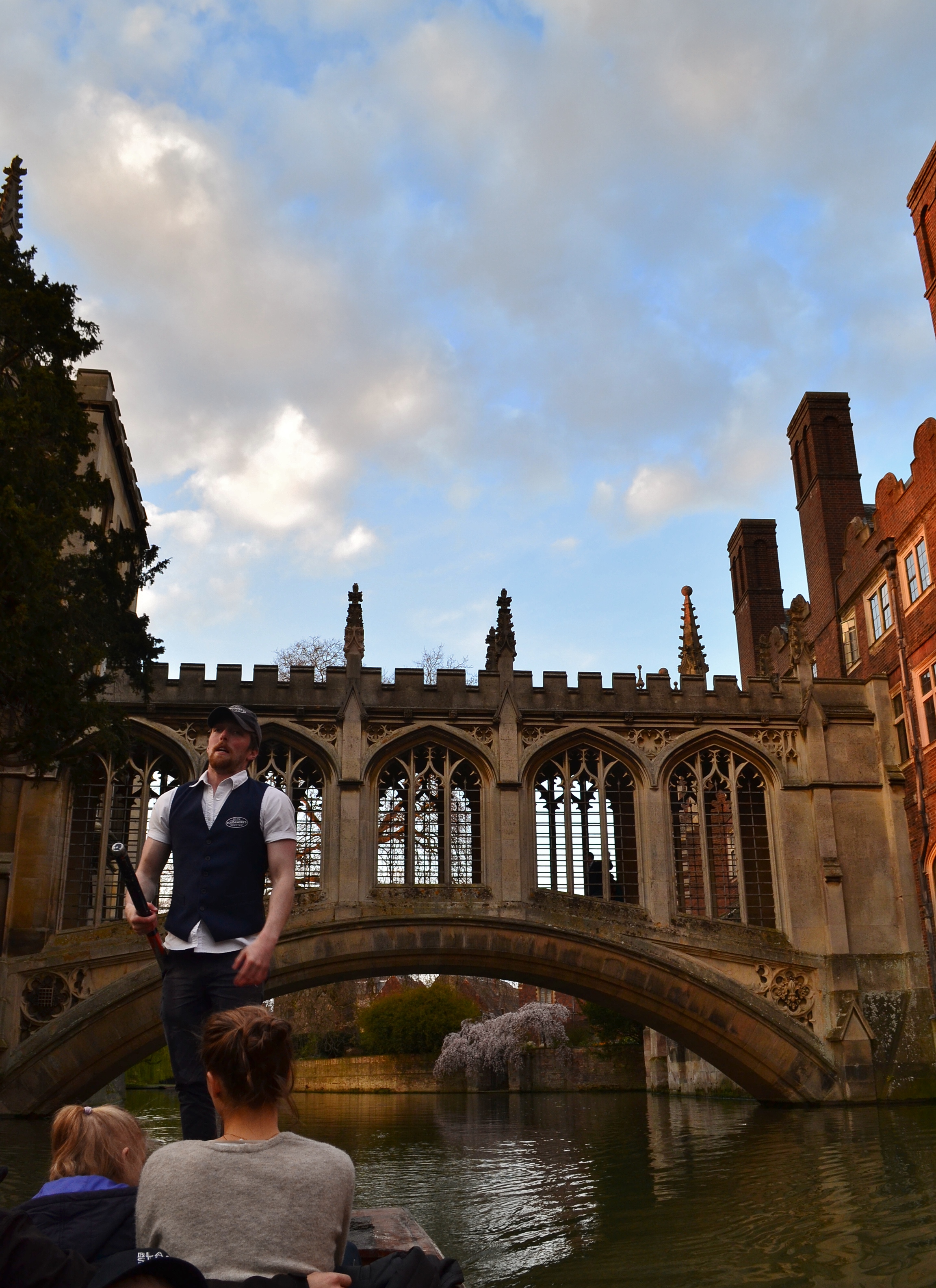 If “punting on the Cam” is a phrase that leaves you scratching your head, not to worry. It has that effect on many people. The Cam is the river that runs through Cambridge, and punt boats are traditional flat bottomed (square and stodgy looking) boats. The “punter” is the unlucky bloke who stands at the back of the boat and both steers and propels the small vessel with a long pole.
