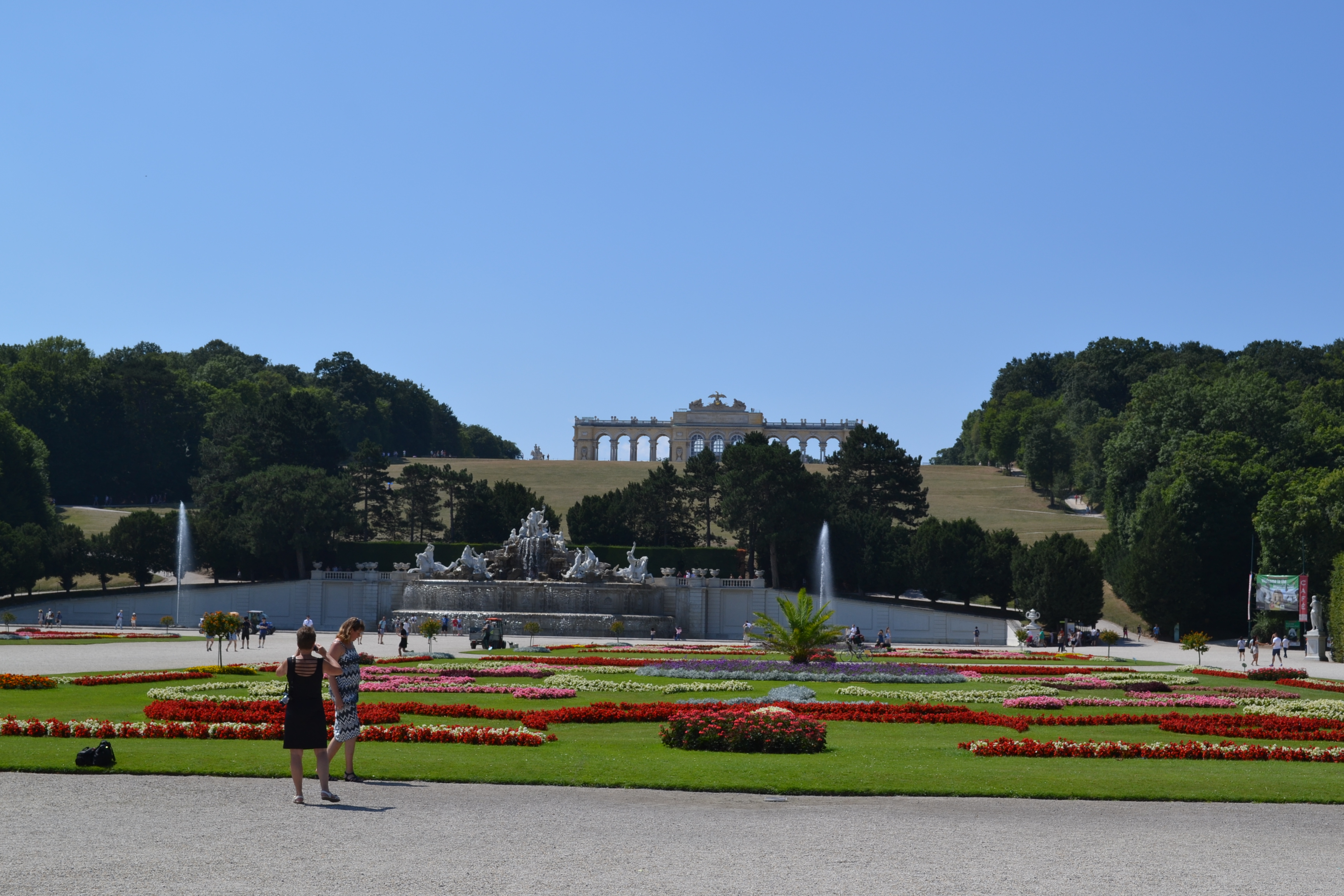 Today’s travel memory is brought to you by summertime heat–days that start out hot, become alarmingly hotter, and end in your body, bones and all, reduced to a puddle on the asphalt. If this sounds like the beginning of another post on my new home in Florida . . . oddly enough, it isn’t. Today’s memory is from Schloss Schonbrunn (Schonbrunn Palace), in Vienna, Austria. It was built in the 17th and 18th centuries, modified in the 19th century, and partially reconstructed after WWII (the palace took a direct hit in 1945)– so it is, in every sense, “one for the ages.”