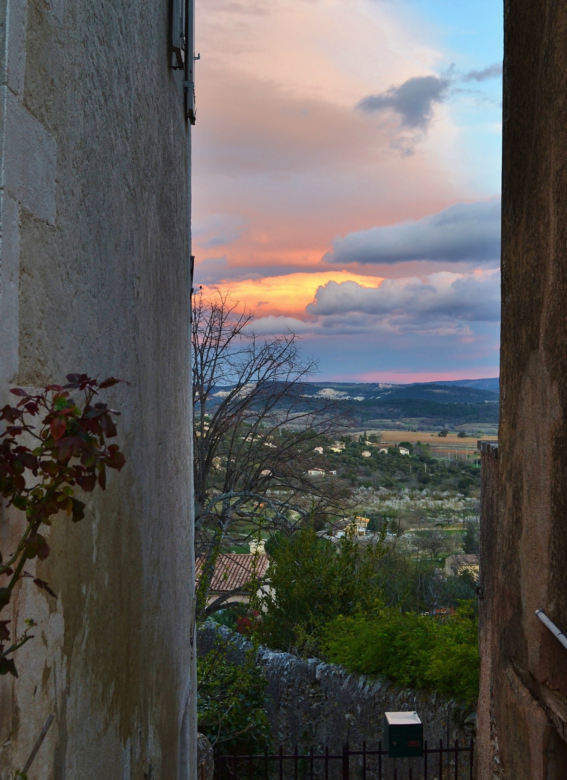 It was a stroke of incredibly good fortune that we spent a week in Provence in April. Good fortune . . . and kind friends with a vacation home there. They offered us their home in the ancient city walls for the week, and the home and the town were both magnificent! La Portail (the name of the house) is nestled in the ramparts of the ancient city, and it sits close to the top of the hill, offering spectacular views of the valley below: